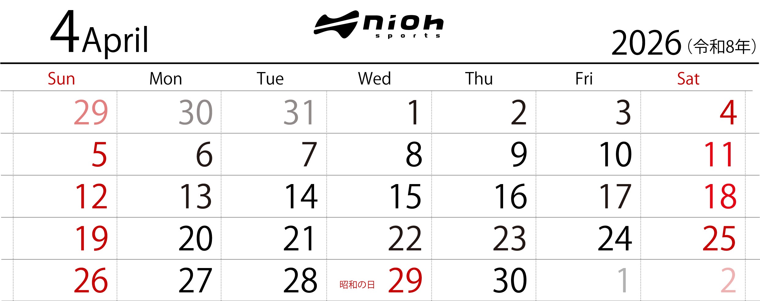 4月営業日のお知らせ